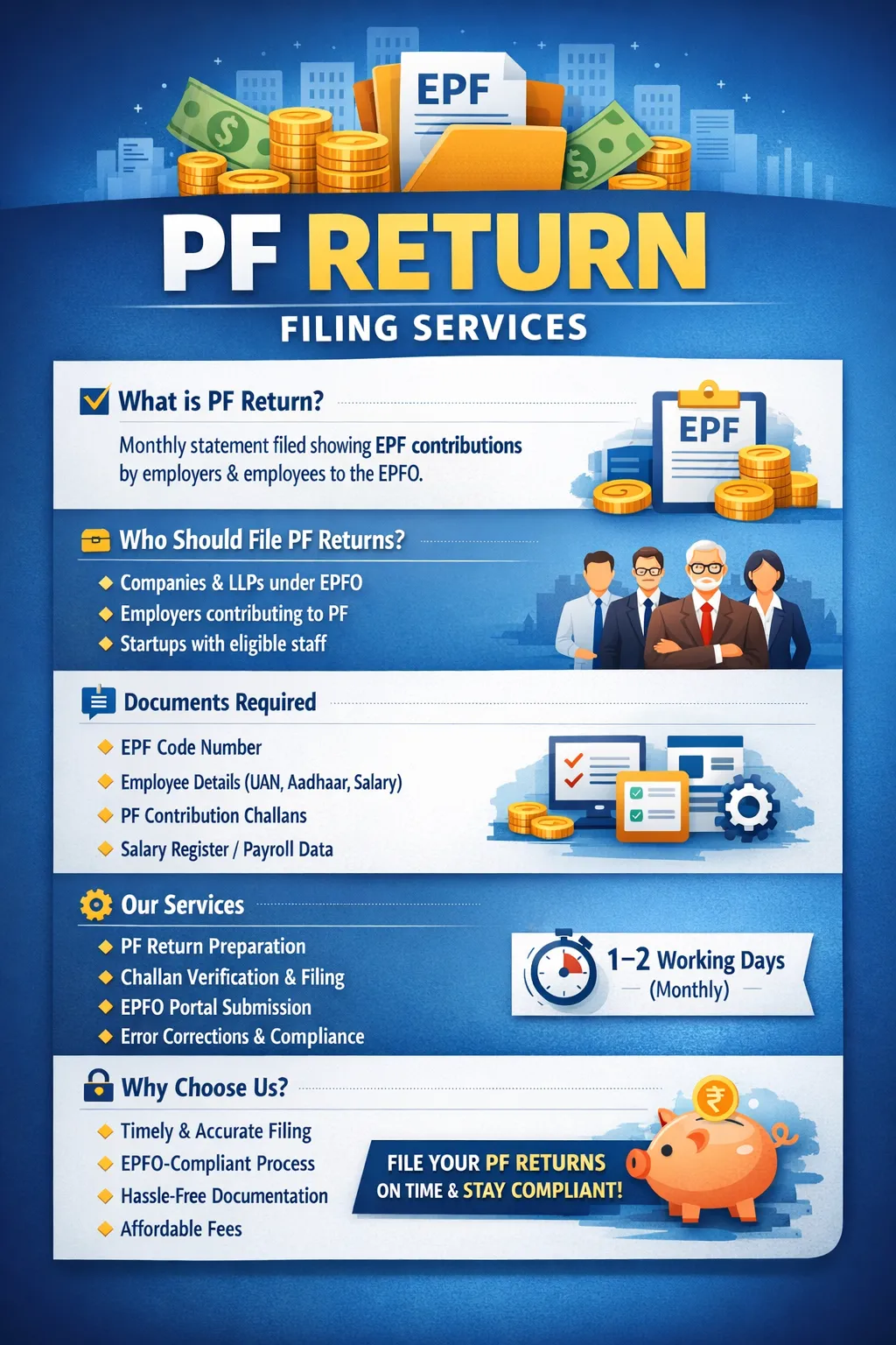 📞 Ensure compliance and timely PF contribution filing with professional support.